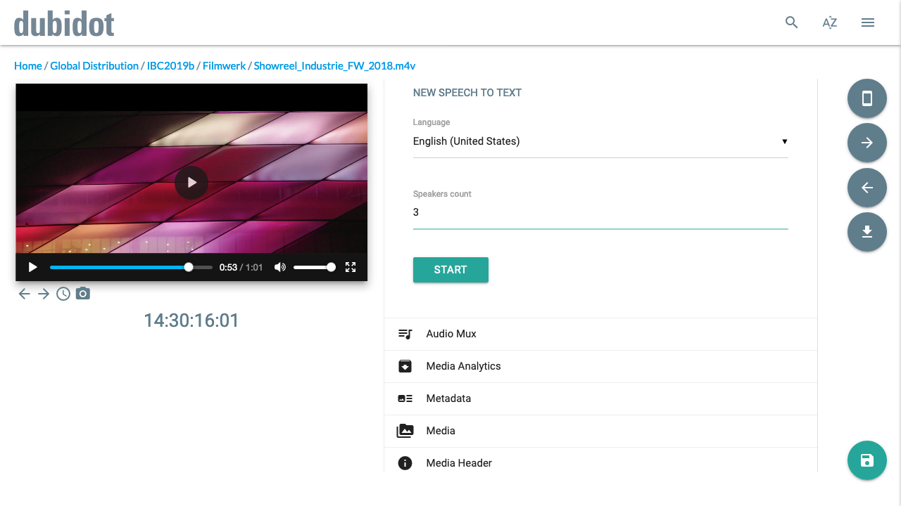 With Dubidot Analytics you have an AI platform at your disposal. With Speech to Text, spoken contents of a film are saved frame by frame. The text can be assigned to the different speakers. These can be translated into more than 100 languages. The system recognizes objects and faces, so that keywording and indexing can be fully automated in many areas.